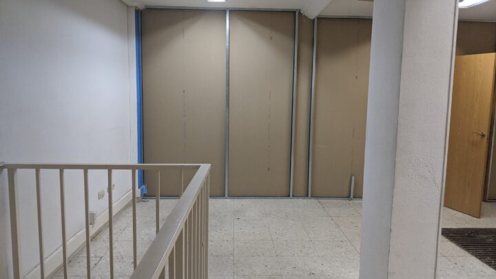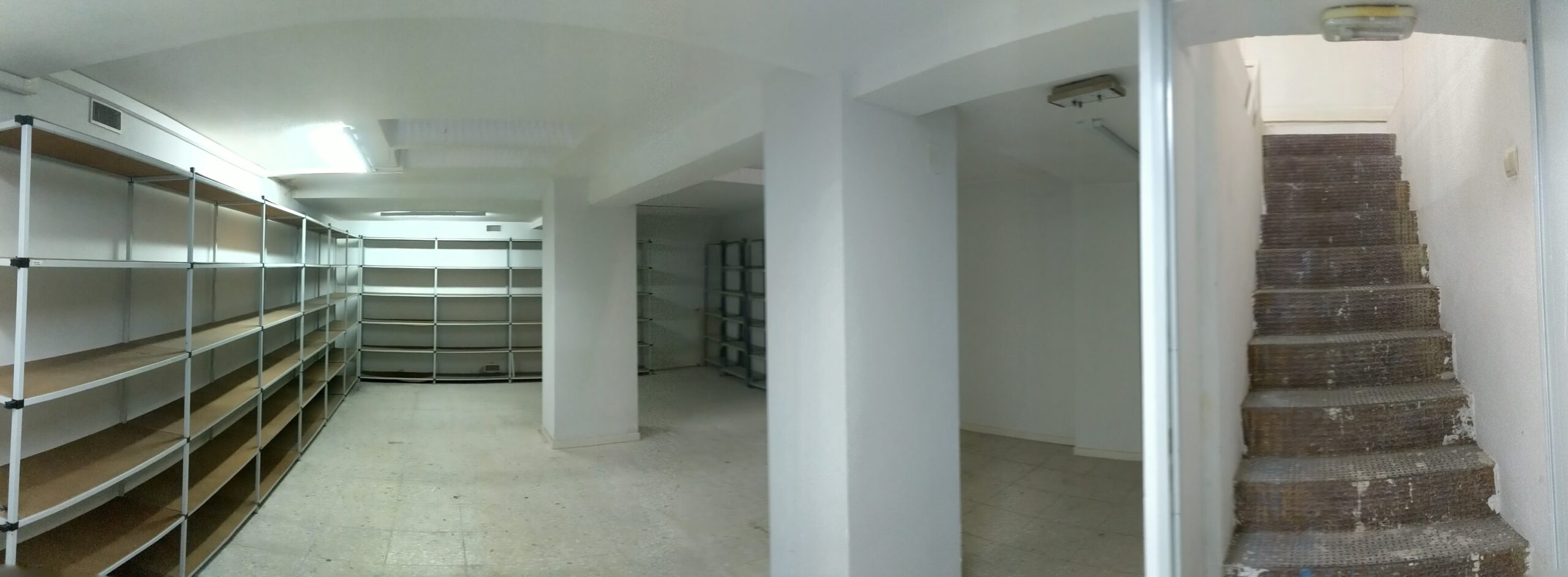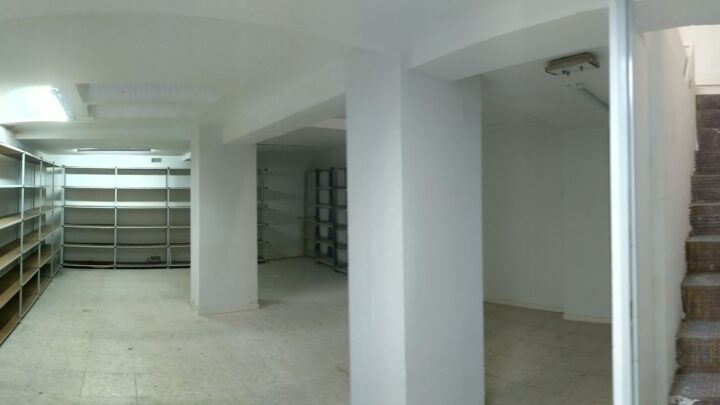 Planta calle de 150m² aprox. En ella hay dos aseos independientes y un lavabo común. La planta calle se divide en 2 por una pared de pladur que se puede retirar; en esta zona se encuentra un pequeño almacén o despacho también con paredes de pladur.